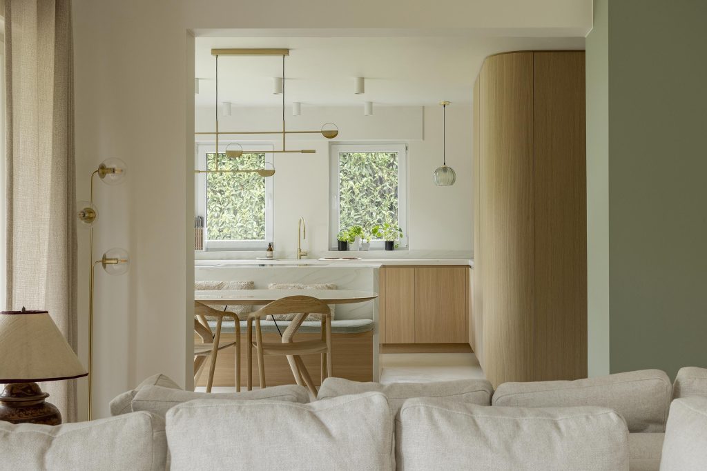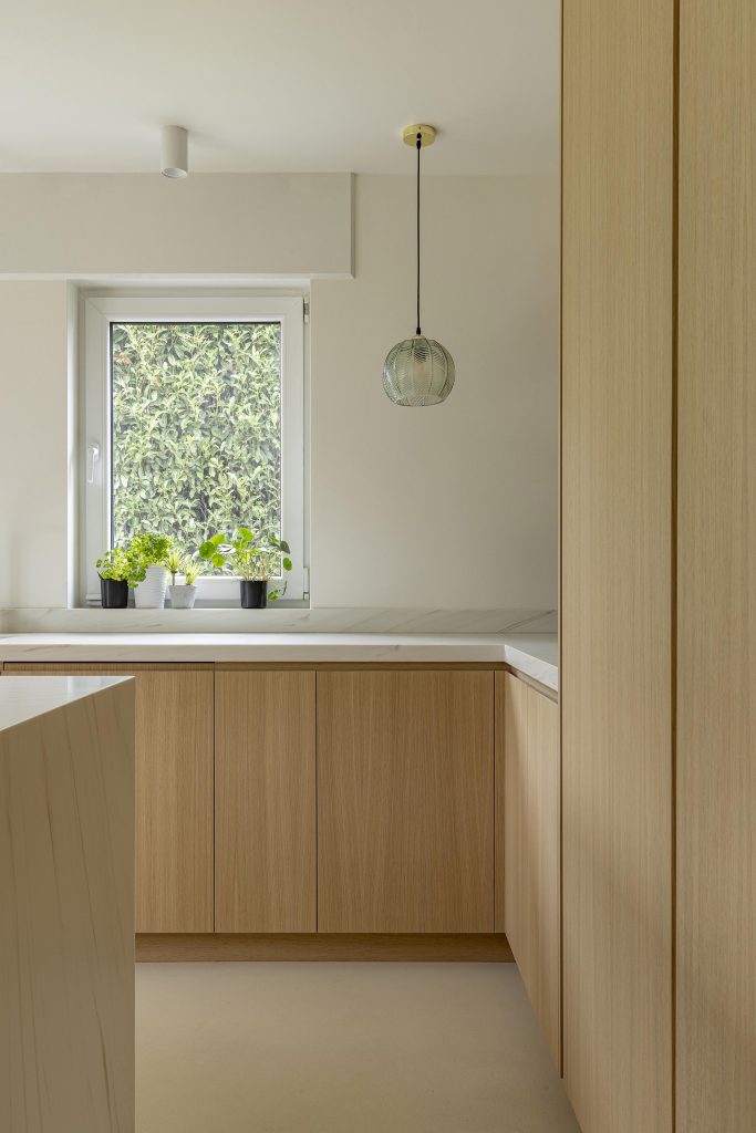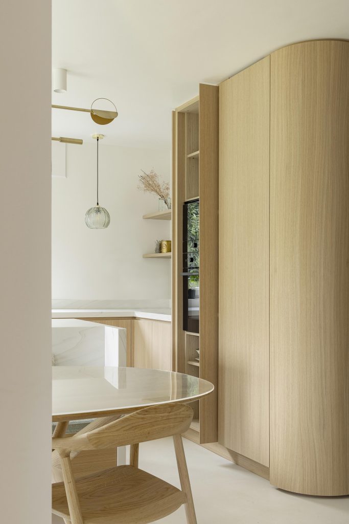 Les différents espaces dialoguent entre eux avec subtilité grâce à une continuité des matières et des détails. Les volumes sont structurés sans être cloisonnés, laissant circuler la lumière et les perspectives. Chaque élément trouve naturellement sa place, dans un équilibre entre esthétique, usage et intégration architecturale.